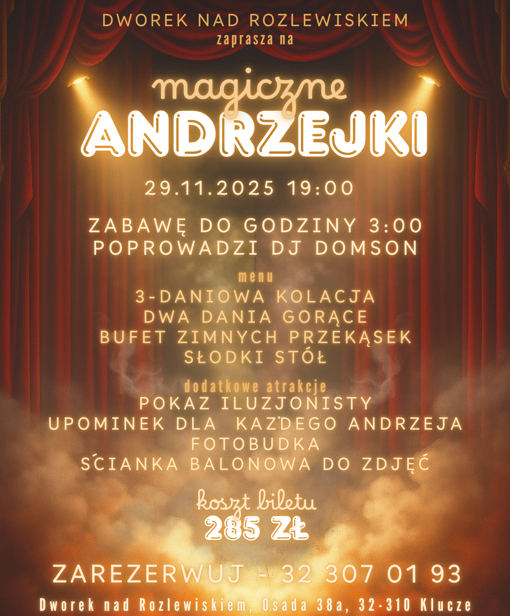 Jak co roku mamy ogromną przyjemność zaprosić wszystkich Państwa do wspólnego świętowania Magicznych Andrzejek w Dworku nad Rozlewiskiem.